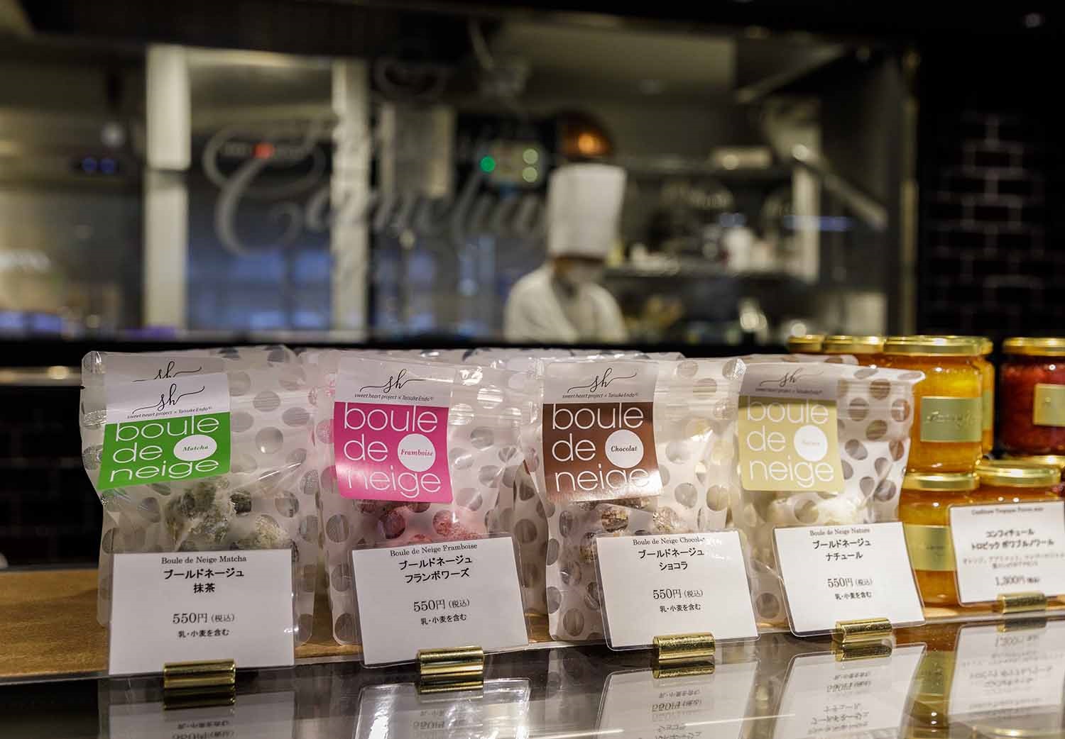 パティスリーカメリア銀座のシェフパティシエ、遠藤泰介さんが監修したブールドネージュ。調布市の調布を耕す会さん、江東区のふれあい工房ゆめま~るさんが、そのレシピを丁寧に作っています。ふだんは主に上記工房のお店、そして当プロジェクトのホームページでしか販売されていないのですが、10月初旬からパティスリーカメリア銀座で販売されています。フランボワーズ、抹茶、ショコラ、ナチュールの4フレーバーです。550円(税込)。遠藤さんと福祉工房の皆さんがコラボレーションしてできた本格的な美味しさです。