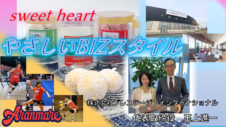 東北を中心にBPO(ビジネス・プロセス・アウトソーシング)センターを展開するプレステージ・インターナショナル社。同社はバスケットボール、バレーボール、ハンドボールの女子実業団チーム「アランマーレ」を運営しています。アランマーレのホームゲームや地元学生との交流イベント等で、各チームのホーム地である秋田や山形等の福祉施設のお菓子を中心に使ってくださっています。sweet heartのお菓子を採用しようと思った理由やその活用法、そして、地域社会に対しての想いを玉上社長にうかがいました。<以下敬称略>