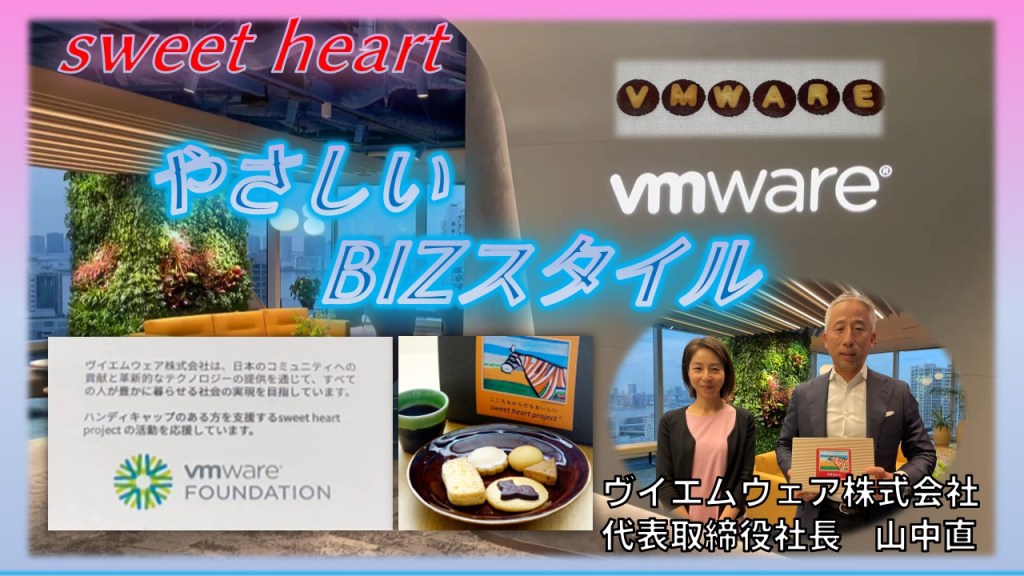IT社会の基盤となるクラウドをけん引するVMwareは、”Force for good”、”Tech for good”という言葉を大切にしています。”Force for good”、力をいい方向に向けていく。そしてITの位置づけがどんどんかわり、パワフルになっているからこそ、”Tech for good”、テクノロジーをより良い方向に導くことがテクノロジー企業の役割。同社はsweet heart projectのお菓子を、手土産からマーケティングまで全面的に採用、更にsweet heart projectのIT面でのサポートの準備も進めてくださっています。なぜ、sweet heartなのか、お聞きしました。