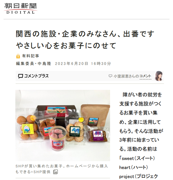 関西の施設・企業のみなさん、出番です やさしい心をお菓子にのせて(朝日新聞) 投稿者:sweet heart project2023-06-212023-09-25カテゴリー:PR、新着情報 朝日新聞大阪版、朝日新聞デジタルに掲載いただきました。是非、ご覧ください。 https://www.asahi.com/articles/ASR6M7K1WR68PPTB00D.html 共有: クリックして X で共有 (新しいウィンドウで開きます) X Facebook で共有するにはクリックしてください (新しいウィンドウで開きます) Facebook いいね 読み込み中…