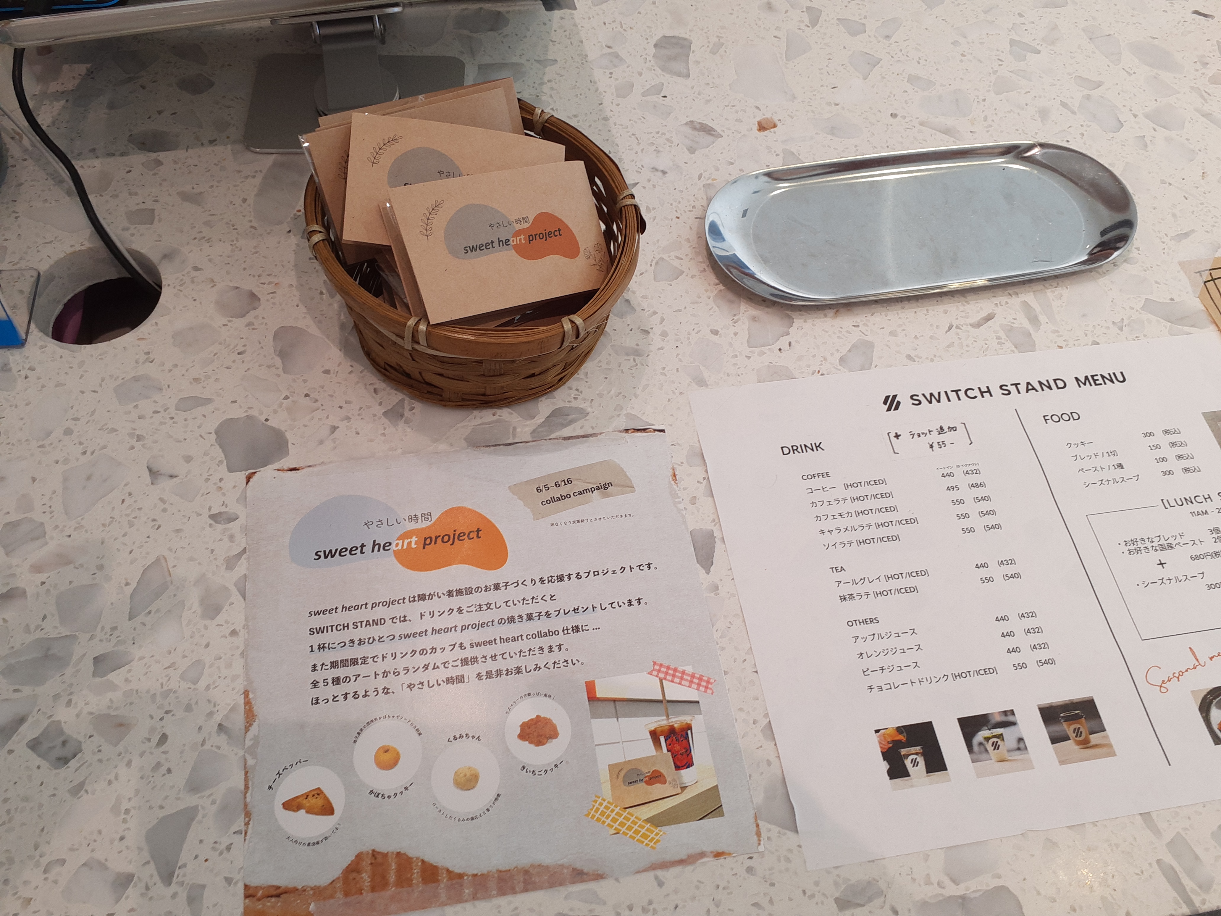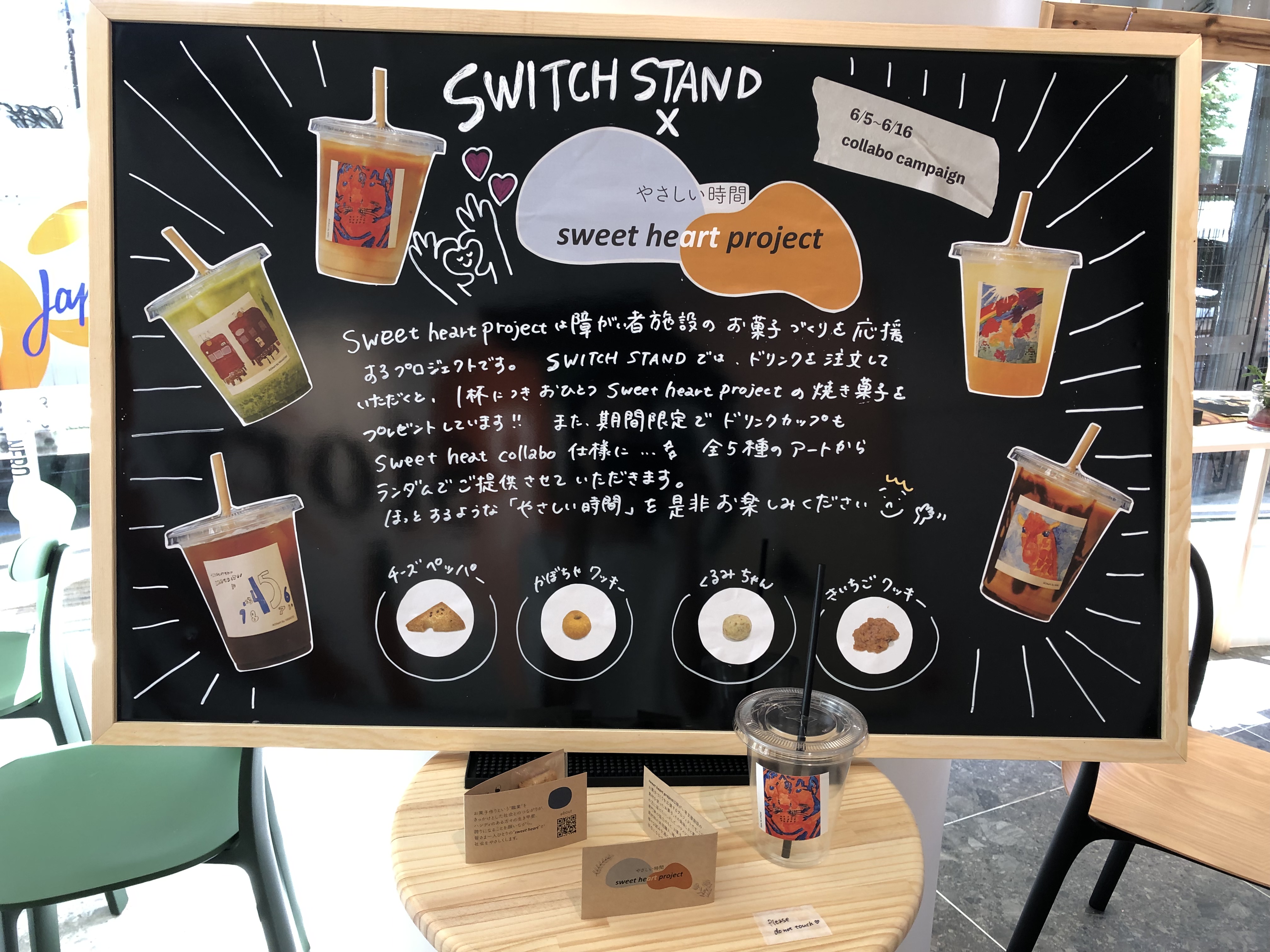 もともと、この「SWITCH STAND」のカフェの狙い、そしてコンセプトは、このカフェでの、お客さんはじめこの場(カフェ)を訪れた多くの人の間に“新たな発見”や“新たな出会い”、そして”何かを伝えること“”何かコミュニケーション“などが生まれること、ですが、「いわゆる”モノ消費“とは異なる、”コト消費“、”コトが何かを人に広め、コミュニケーションを自然に創出していく”という場を生み出す、というもので、その面でも、今回の障がい者の方のお菓子作り支援のsweet heart project とのコラボはとてもいい一つの成功例です」と、小倉さんから重ねて意義を熱く説明いただきました。