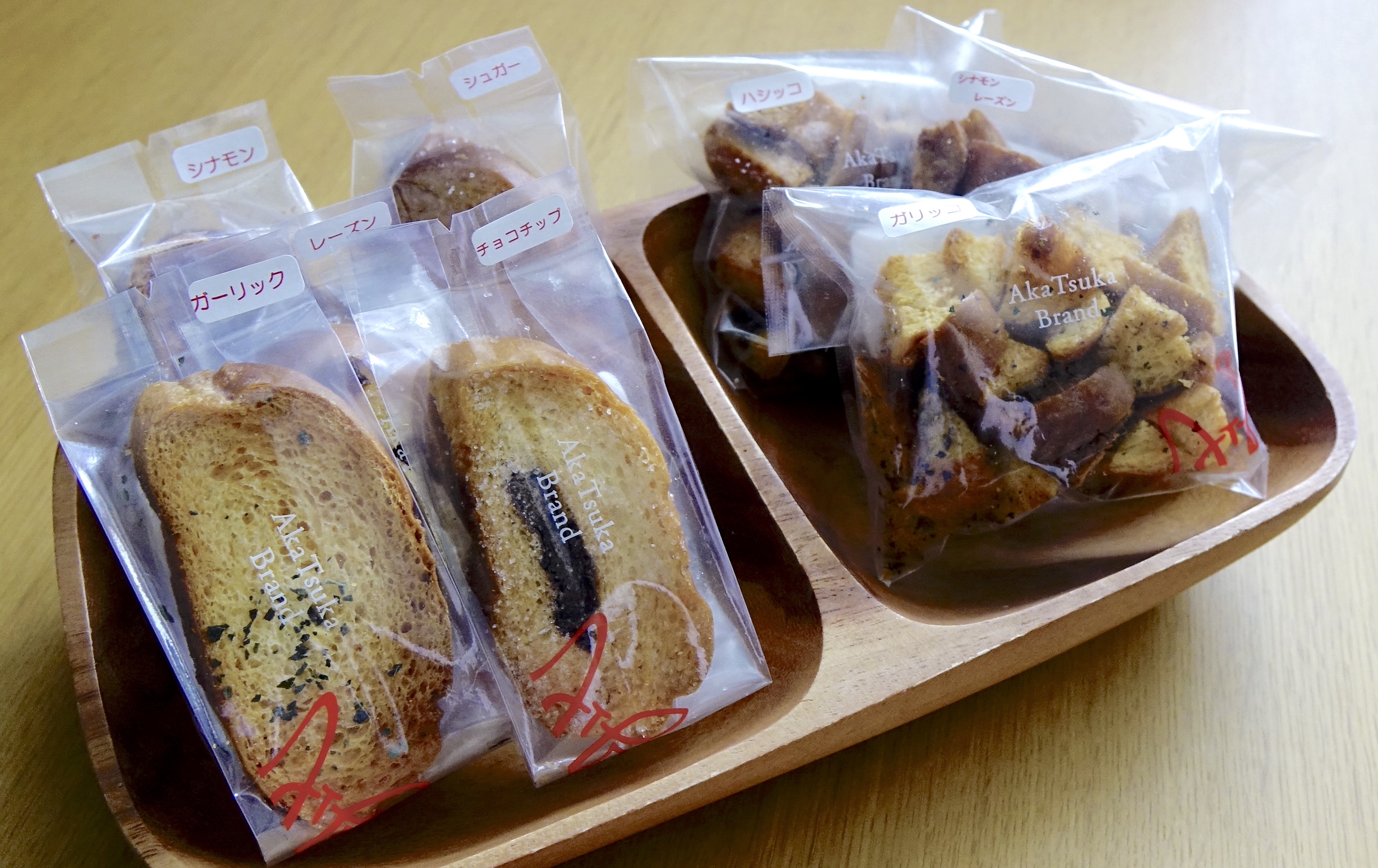 ![]() | ラスク チョコ、レーズン、シナモン、シュガー カリッとした食感に仕上がるように手で生地をこねて成形し、焼き上げています |